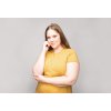 Dívka na fotce je 171 cm vysoká a nosí konfekční velikost 44. Na sobě má velikost šatů velká dlouhá.